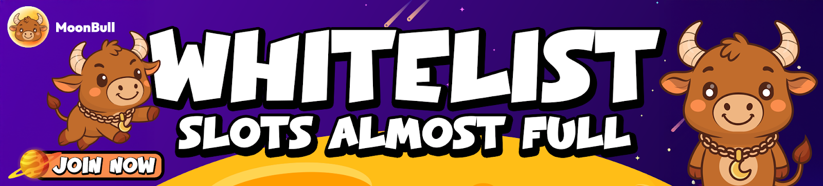 MoonBull's whitelist offers the lowest entry price, secret staking rewards, bonus tokens, and exclusive roadmap hints, all reserved for whitelisted users only.