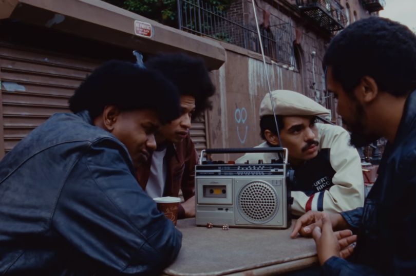 After that iconic shot, the video cuts to a group of men standing around a 1970s-style boombox. Coming from the radio was a voice that sounded like President Donald Trump, with words that gave many goosebumps.