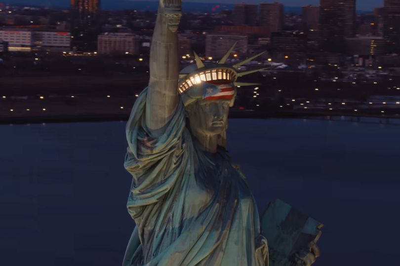 There were a few pointed political messages in the video, with one shot showing the Puerto Rican star from Vega Baja saluting from the crown of the Statue of Liberty, which had a Puerto Rican flag.