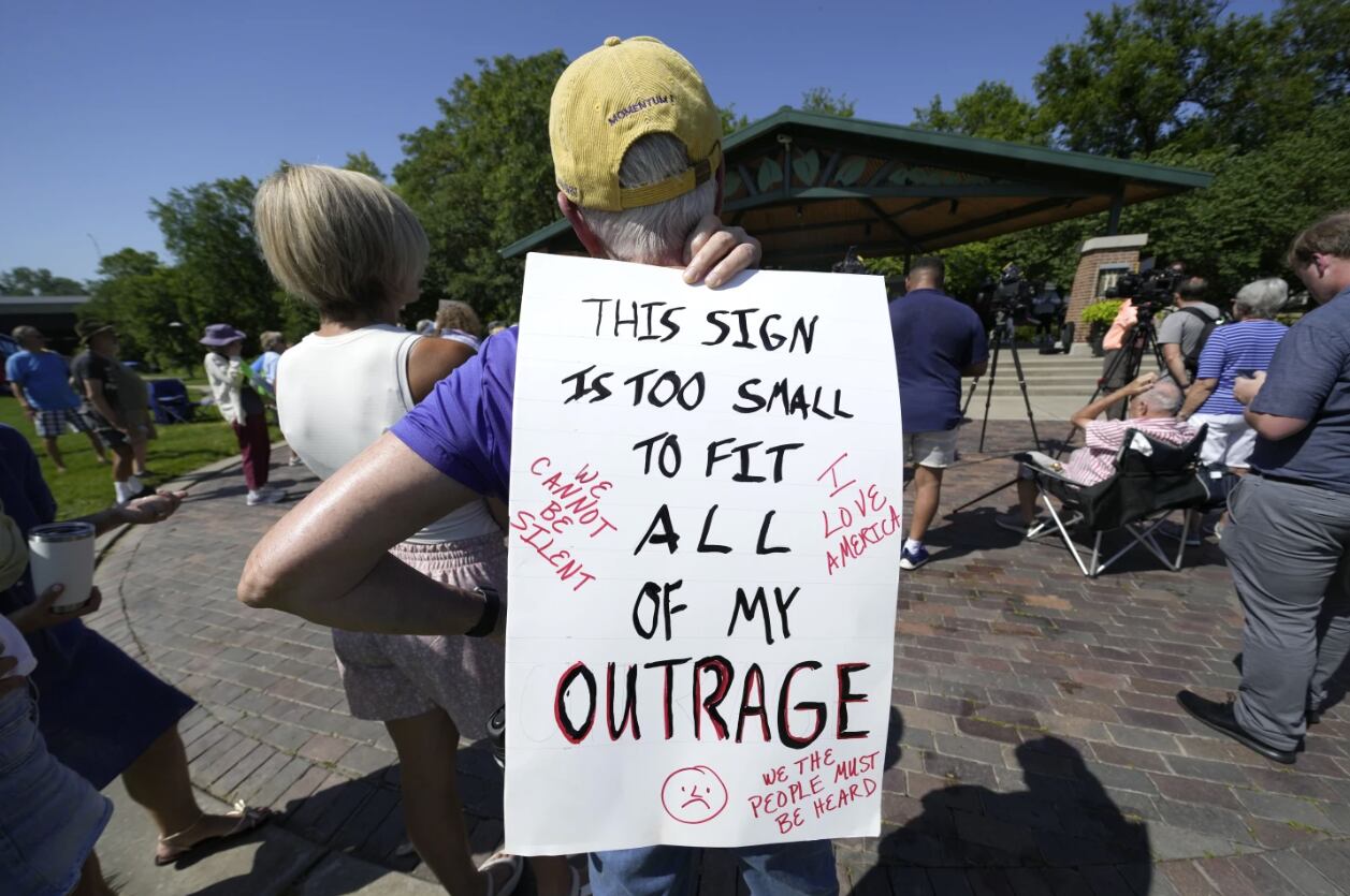 As some Democrats in Washington predicted a political backlash across America, the response was somewhat muted Thursday at a Democratic event in Iowa, barely 10 miles from the State Fairgrounds where Trump later drew thousands for an evening rally.
